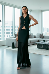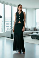 El conjunto de mujer llamado "Gardenia" es una opción elegante y fresca, ideal para ocasiones donde se busca un equilibrio entre sofisticación y comodidad. Este conjunto destaca principalmente por su chaleco, que tiene un diseño único.