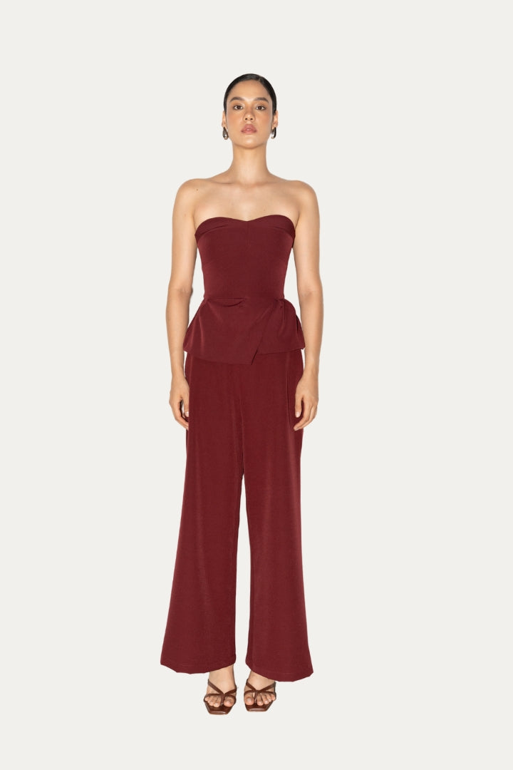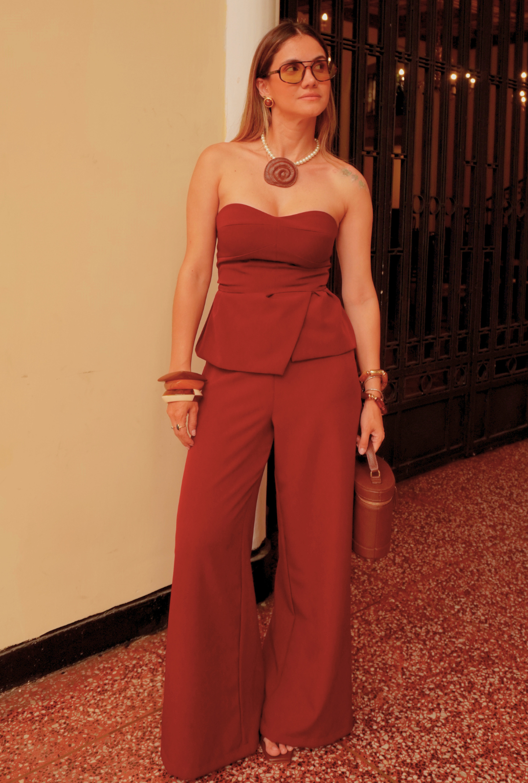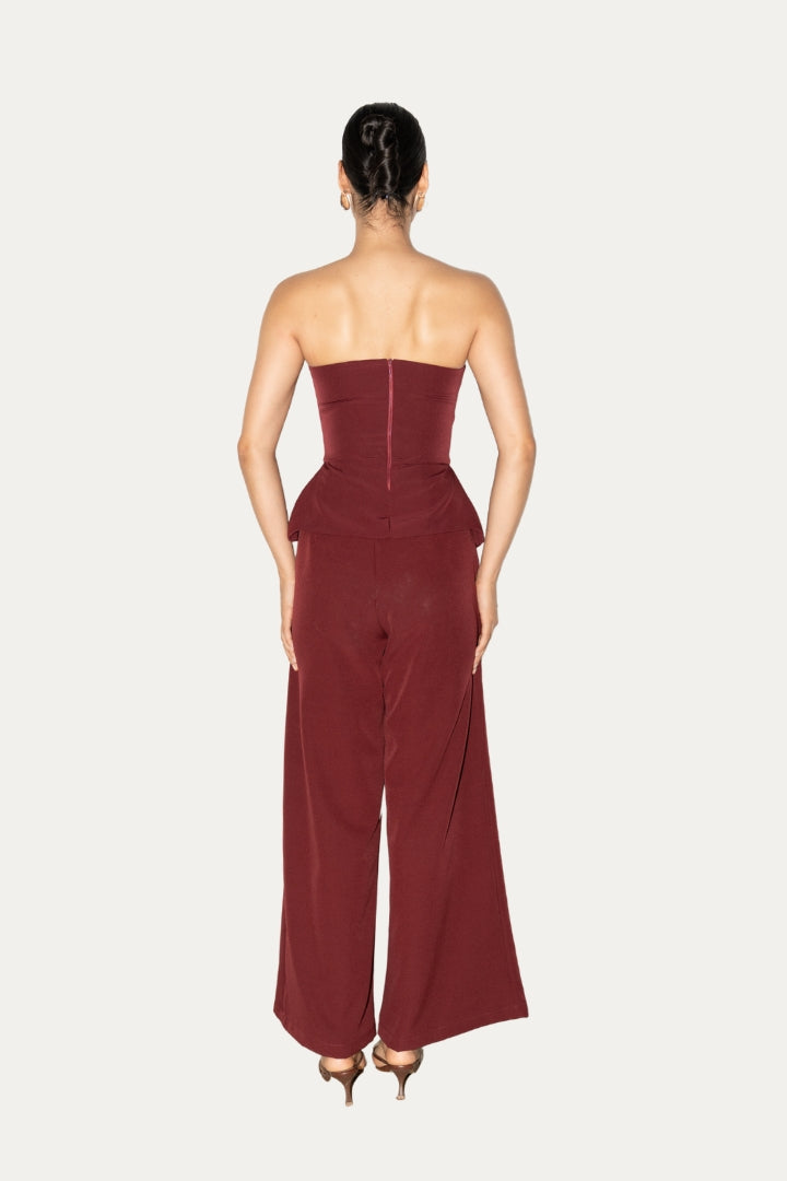 Minimalista, sofisticado y atemporal — este enterizo es la pieza perfecta para mujeres que valoran la elegancia moderna con un toque de poder. Su diseño strapless estructurado realza los hombros y el escote con delicadeza, mientras que el detalle tipo péplum en la cintura define la silueta y crea un efecto visual que estiliza el cuerpo.
