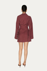 Con un aire envolvente y libre, nuestro vestido se define por su silueta tipo kimono con escote en “V” y mangas amplias. Su cinturón del mismo tono ajusta la cintura, creando un contraste entre estructura y fluidez que resalta la figura con elegancia contemporánea.
